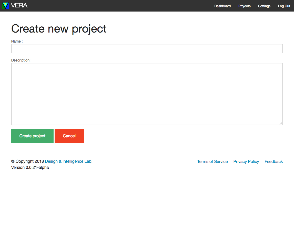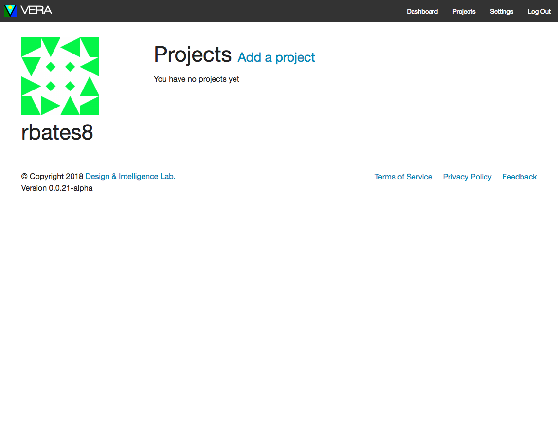 Initially there will be no projects, and you will need to click Add a project to create a new VERA project: