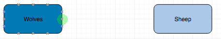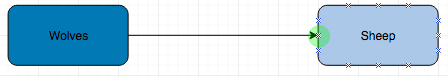 To create a relationship between the Wolves and Sheep, hover your mouse cursor over the Wolves Component and you should see several small markers around the edge - these are relationship anchor points. Move your mouse cursor over one of those points and you will see a green halo around that marker. This indicates that you can create a relationship connection starting at this point to another Component in the model: