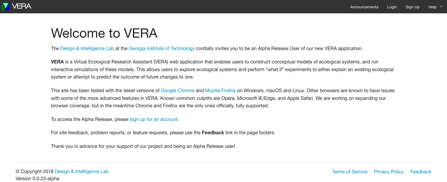We are immediately notified of the feedback, and it is logged in our tracking system. If however the website is not processing th feedback form, or you require some other assistance, please email us at veraweb@cc.gatech.edu and someone from the team will reply as quickly as possible. If you do choose to email us regarding a technical issue, please provide us with the following information along with your issue:
