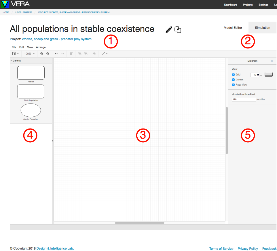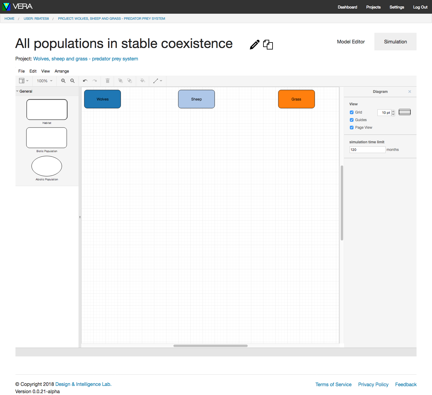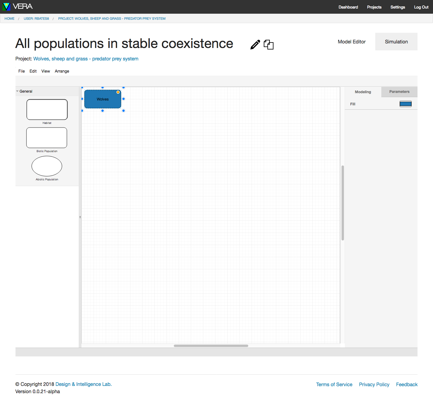 The goal of the VERA tool is to allow a researcher to construct a conceptual model of an ecological system and simulate the system’s behavior. This allows the researcher to gain valuable insight into the ecological system as well as how the different Components in the system interact. The main steps in this process are: