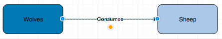Once a green halo shows up on one of the Sheep Component’s relationship anchors, you can let go of the mouse button and you will now have a default Consumes relationship between these two populations: Wolves Consume Sheep.